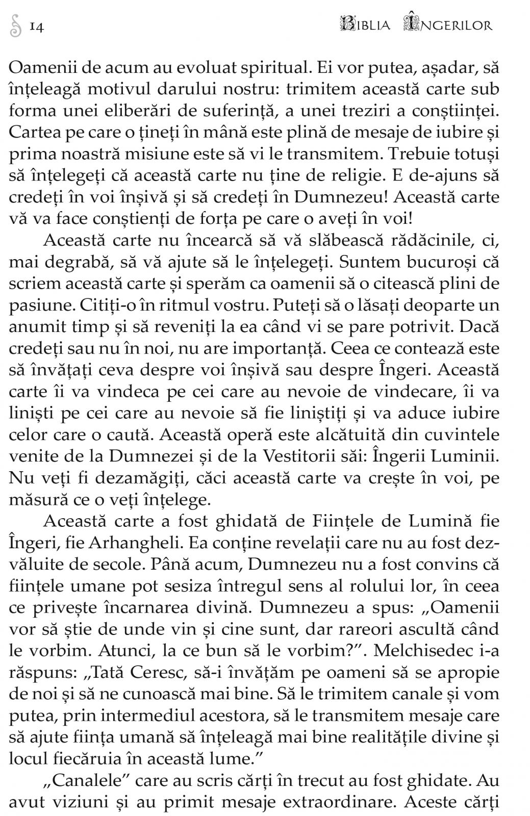 mult si a va inalta spiritual. In ciuda absentei de informatii legate de domeniul ebraic, am intitulat totusi volumul de fata Biblia Ingerilor. In viziunea mea, o biblie reprezinta o opera la care ne putem raporta mai mult de o data in viata. Pentru mine, o biblie este sinonima