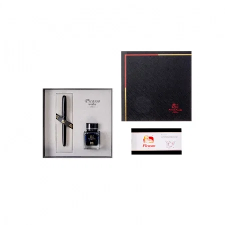 - 1 stilou Picasso avand corpul metalic de culoare neagra, convertor pentru cerneala, cu penita iridium, dimensiune F