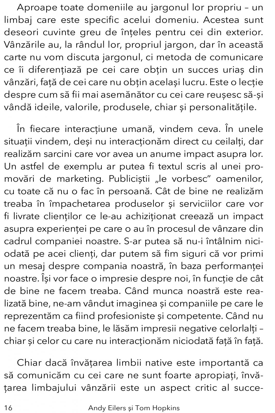 „Daca vrei sa inveti de la doi maestri, nu cauta mai departe de Tom Hopkins si Andy Eilers si de cunostintele pe care le-au impartasit in aceasta carte. O recomand foarte mult.” – Nick Nanton, regizor si producator, castigatorul premiului EMMY pentru Film si Broadway, autor bestseller conform Wall Street Journal