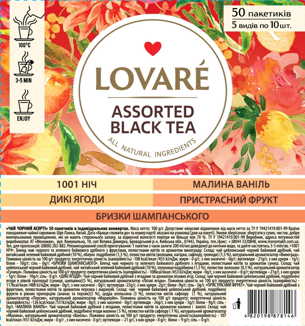 Lovare BLACK TEA ASSORTED - ceai negru asortat. 100 g (50 de pliculete)