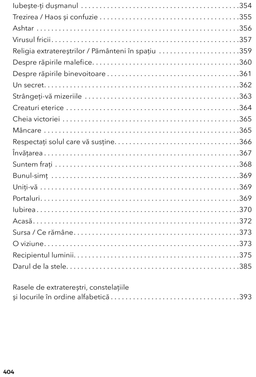 Rapita de Grey cand era copil si salvata intre timp de extraterestrii binevoitori, Elena a pastrat legatura cu ei intreaga sa viata, pana cand a decis ca era timpul sa caute adevarul si sa incerce hipnoza cuantica. Rezultatul e aceasta carte, imbogatita cu ilustratiile ei minunate, ce dezvaluie informatii extraordinare precum un repertoriu ilustrat a 110 specii diferite de extraterestri ce au legaturi cu planeta noastra, informatii detaliate despre grupurile si aliantele din galaxie, dar si o harta a stelelor in care exista viata extraterestra si mesaje spirituale de speranta.