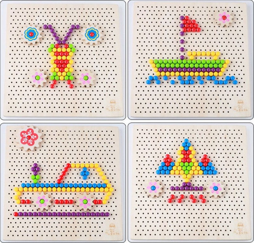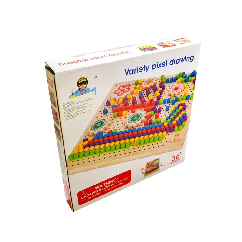 Joc din lemn de creatie tip mozaic pentru copii, un concept nou si modern bazat pe desenul tip Pixel, inspirat din diversele jocuri indragite de copii.