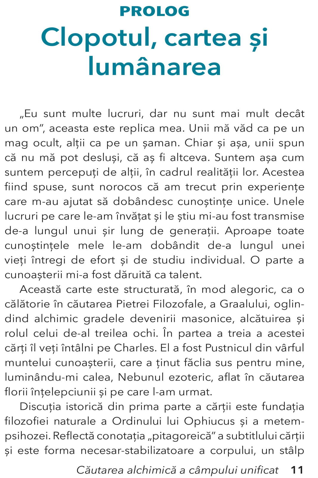 Aceasta carte este structurata, in mod alegoric, ca o calatorie in cautarea Pietrei Filozofale, a Graalului, oglindind alchimic gradele devenirii masonice, alcatuirea si rolul celui de-al treilea ochi. In partea a treia a acestei carti il veti intalni pe Charles. El a fost Pustnicul din varful muntelui cunoasterii, care a tinut faclia sus pentru mine, luminandu-mi calea, Nebunul ezoteric aflat in cautarea florii intelepciunii si pe care l-am urmat.