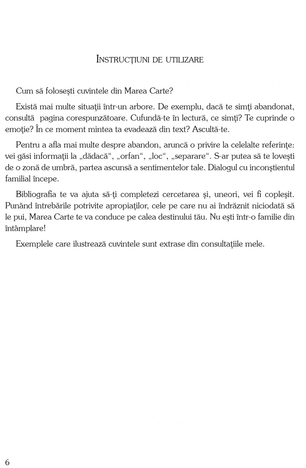 Dictionarul este primul publicat pe aceasta tema si prezinta o cercetare originala, bazata pe povestile de viata ale pacientilor. Se doreste a fi un ajutor eficient pentru eliberarea de repetitiile inconstientului familial, pornind de la prenume, de la date aniversare de nastere, de casatorie, de deces si de la situatii traite de stramosi.