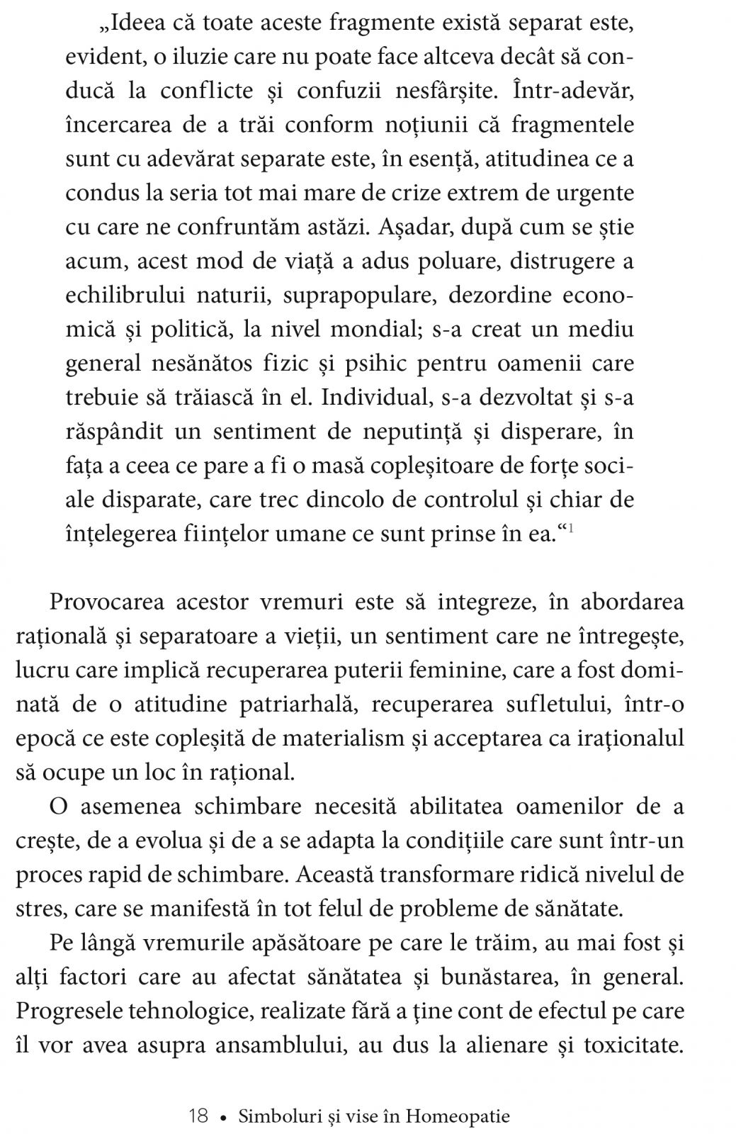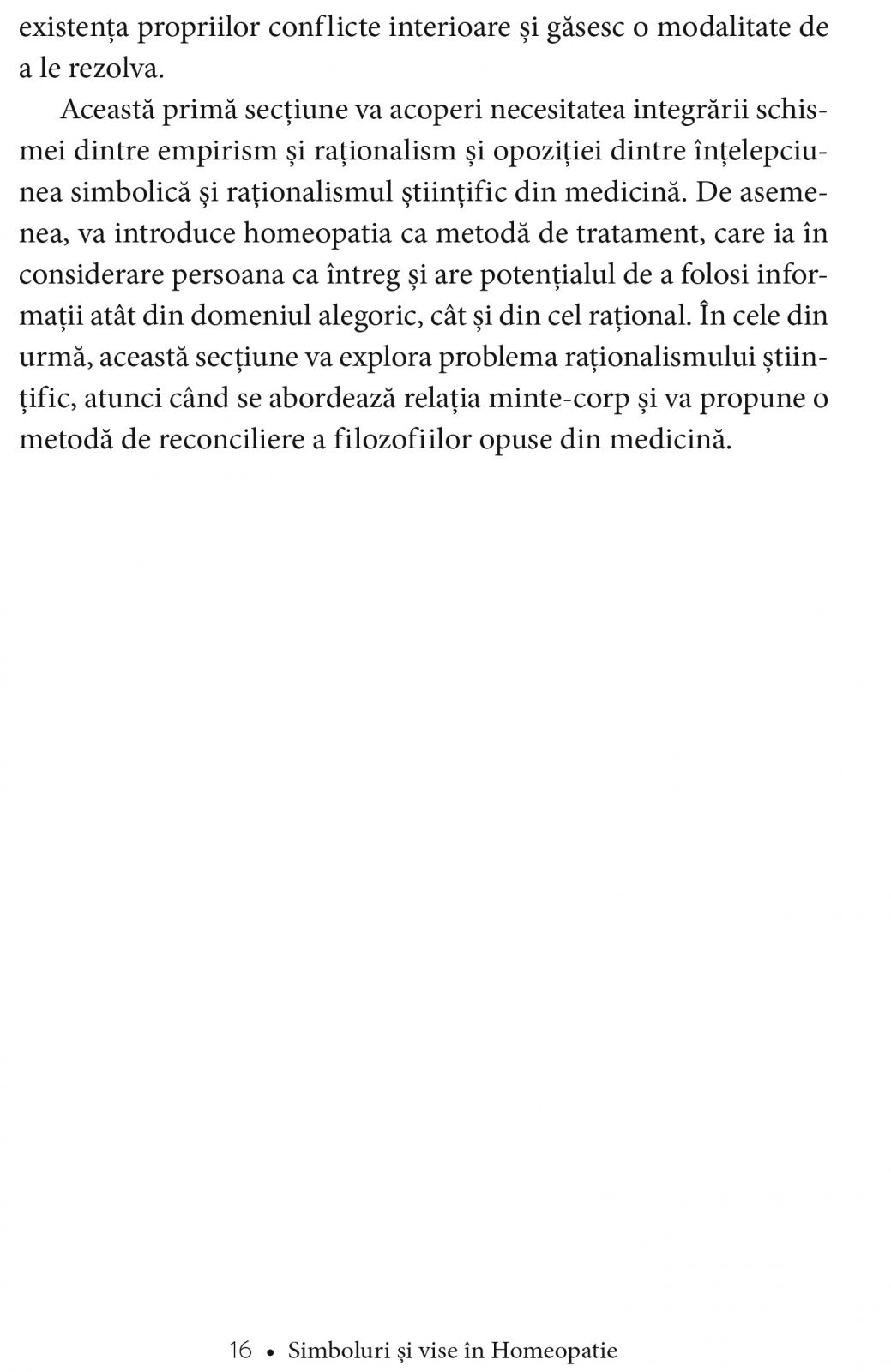 Simboluri si Vise in Homeopatie ii va fascina deopotriva pe cei interesati de homeopatie si de psihologie inclusiv pe psihologii analitici intrigati de modul in care homeopatia poate fi integrata cu teoria jungiana. Jane Cicchetti arata cum conceptele lui C. G. Jung despre arhetipuri, inconstientul colectiv, umbra si calatoria sufletului spre individuatie pot fi aplicate vindecarii. Ea descrie modul in care visele il pot ajuta pe homeopat, folosindu-si adesea propriile vise ca exemplu, si prezinta tipologia clasificarii psihologice a lui Jung, oferind o materia medica simbolica in stil jungian a remediilor homeopatice. Autoarea pune un nou accent asupra remediilor neobisnuite, realizate din cele sapte metale alchimice, din copaci, vite si lapte.