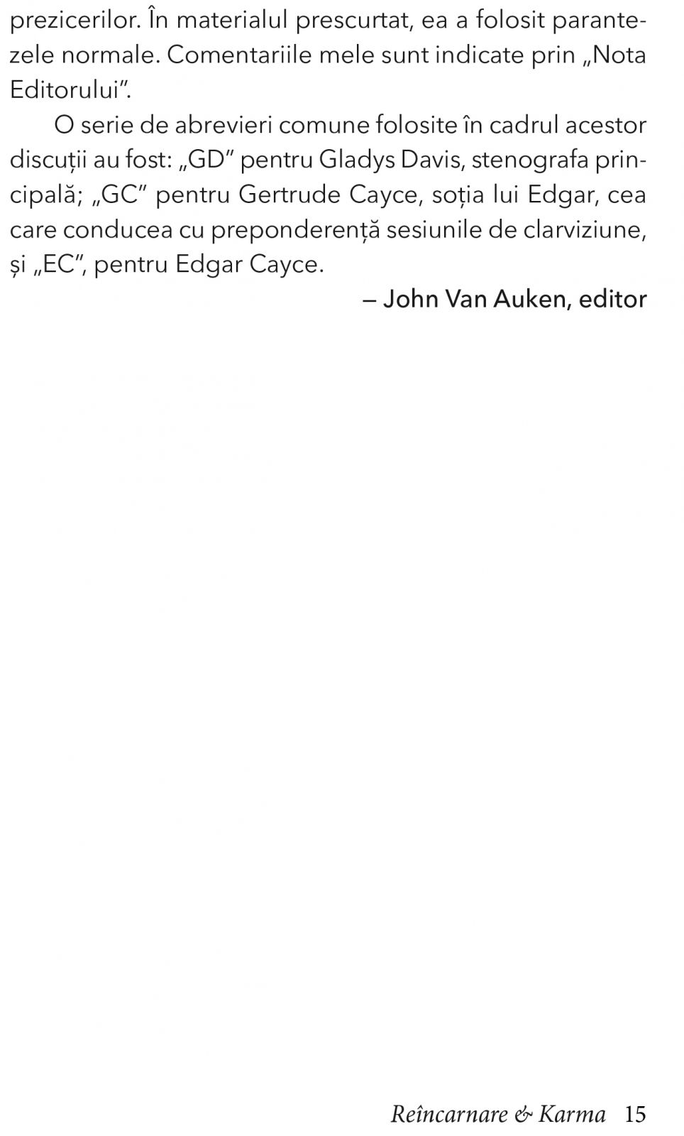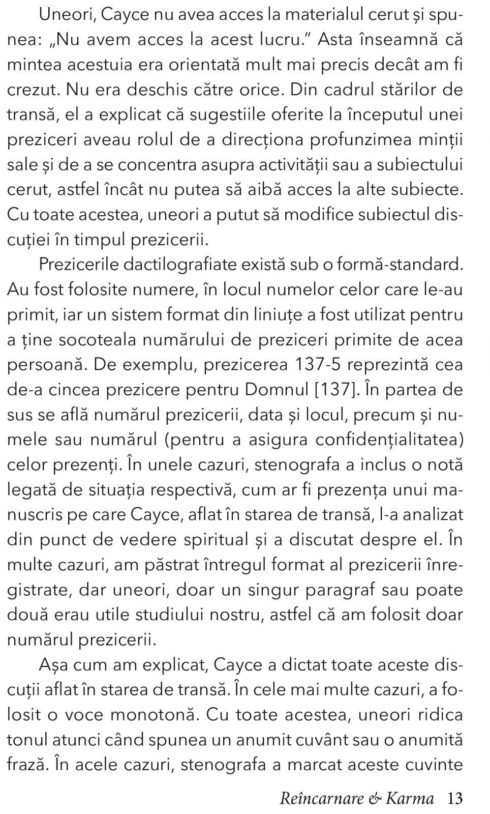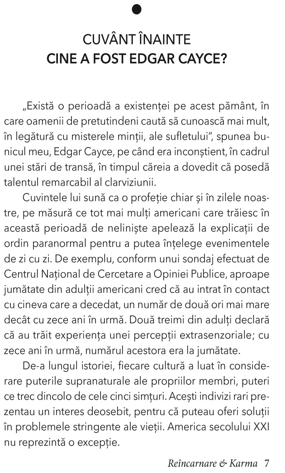 Abilitatea extraordinara a lui Edgar Cayce de a citi Akashic Record, the Book of Life, ne ofera unele dintre cele mai bune perspective in ceea ce priveste reincarnarea si karma disponibile la ora actuala. Dintre miile de discursuri tinute de Cayce, acestea referitoare la incarnare (cum si de ce are loc, prezentand sute de exemple) si karma (natura reactiilor karmice si cum sa le rezolvi in timpul vietii tale) sunt cele mai profunde, cunoscute si de mare ajutor.