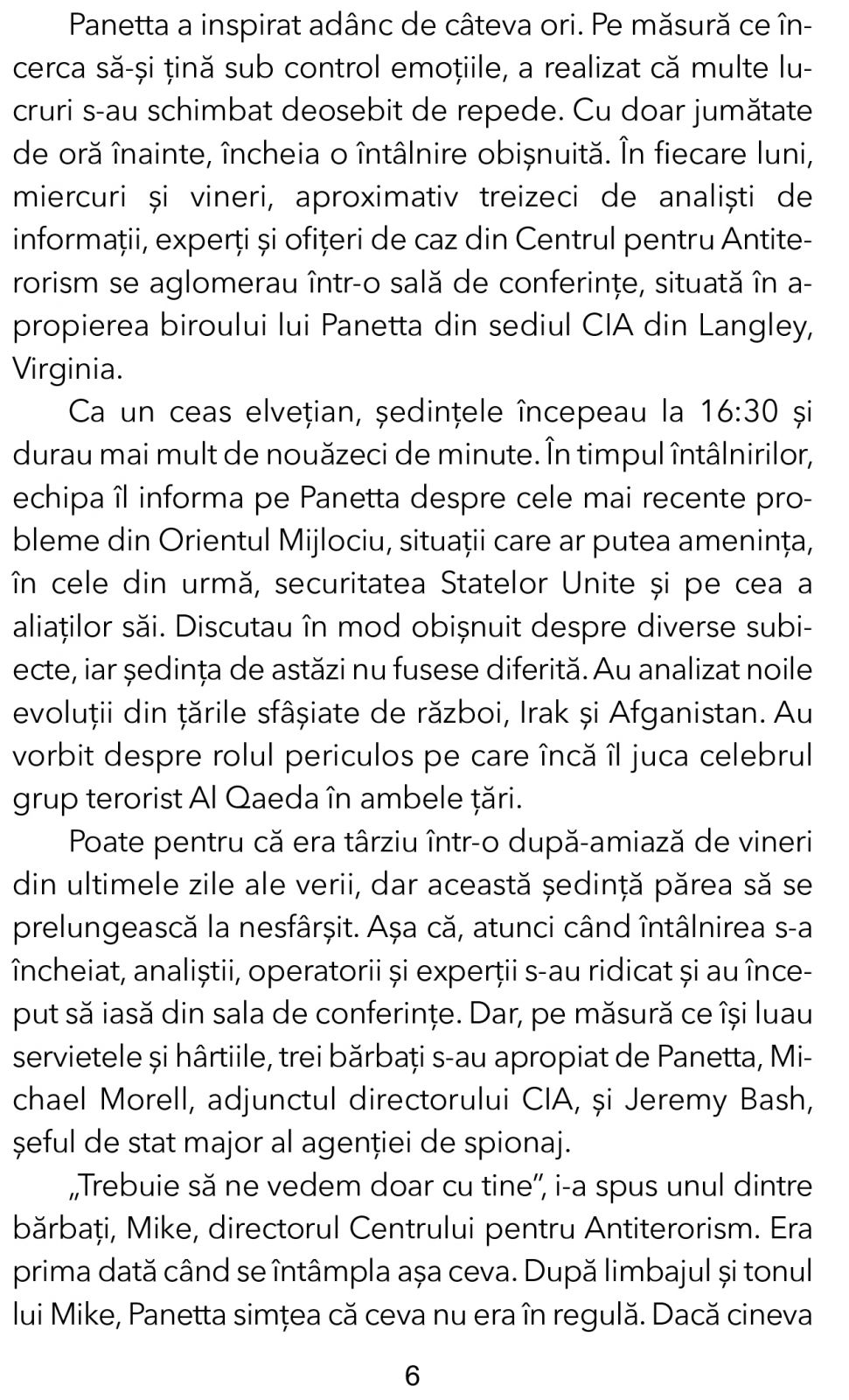 PE 27 AUGUST 2010, trei ofiteri CIA solicita o intalnire privata cu directorul CIA, Leon Panetta. In timpul acelei sedinte secrete, ei ii spun lui Panetta ca, dupa aproape un deceniu, poate, doar poate, l-au gasit pe cel mai cautat om din lume. In Bin Laden: numaratoarea inversa, celebrul jurnalist si prezentator CNN+ Chris Wallace ofera o noua relatare palpitanta a ultimelor opt luni care au precedat misiunea culminanta in care echipa SEAL Six se apropie de tinta sa.