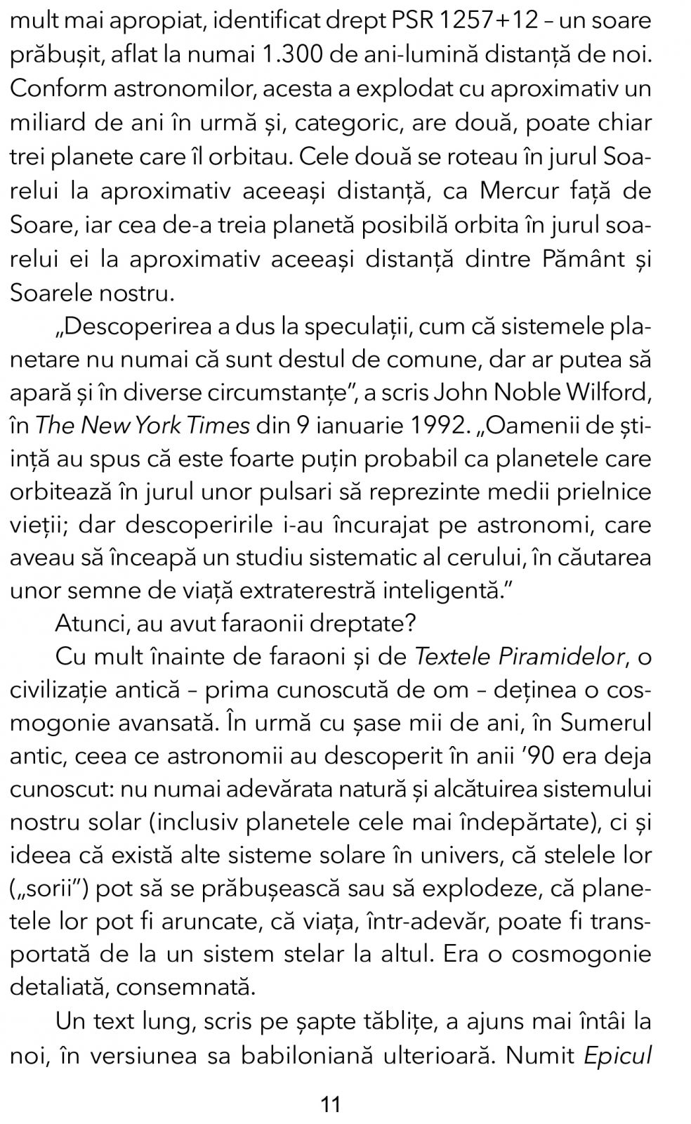 Unul dintre putinii savanti capabili sa citeasca tablitele de lut si sa interpreteze sumeriana si akkadiana, Sitchin a bazat seria “Cronicile Pamantului” pe dovezile textuale si ilustrate consemnate de civilizatiile antice din Orientul Apropiat. Atragand atat interes, cat si critici, teoriile lui controversate despre omenire, ca avandu-si originea in Anunnakii, au fost traduse in peste douazeci de limbi si prezentate in programe de radio si televiziune pe tot mapamondul.