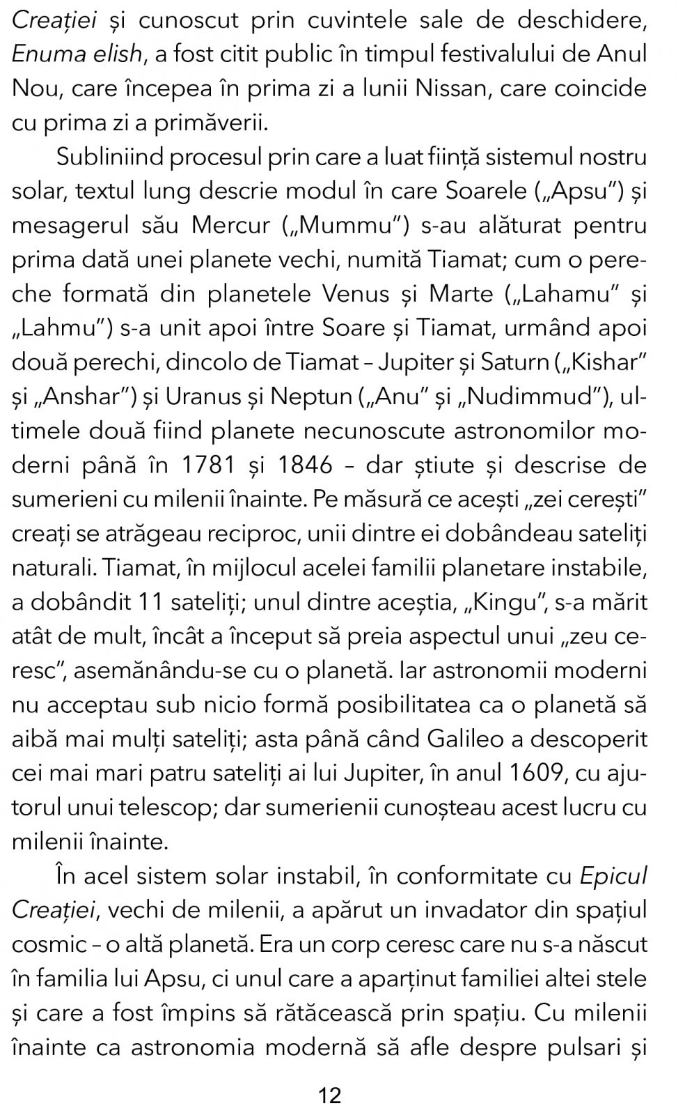 A 12-a Planeta, prima carte, descrie civilizatia sumeriana si prezinta dovezi vechi de milenii atat despre existenta lui Nibiru, planeta-mama a Anunnakilor, cat si despre debarcarile acestora pe Pamant la fiecare 3.600 de ani.
