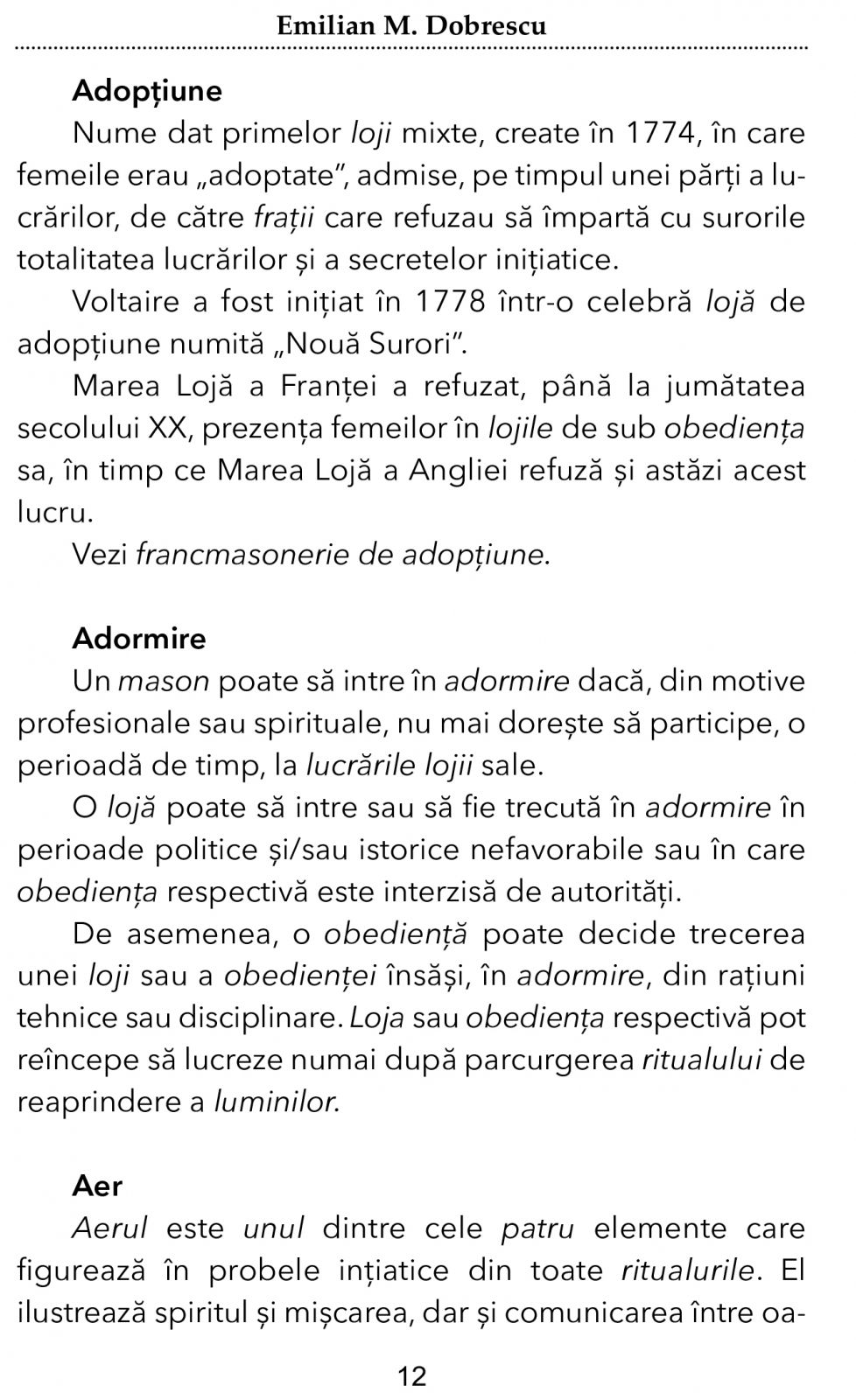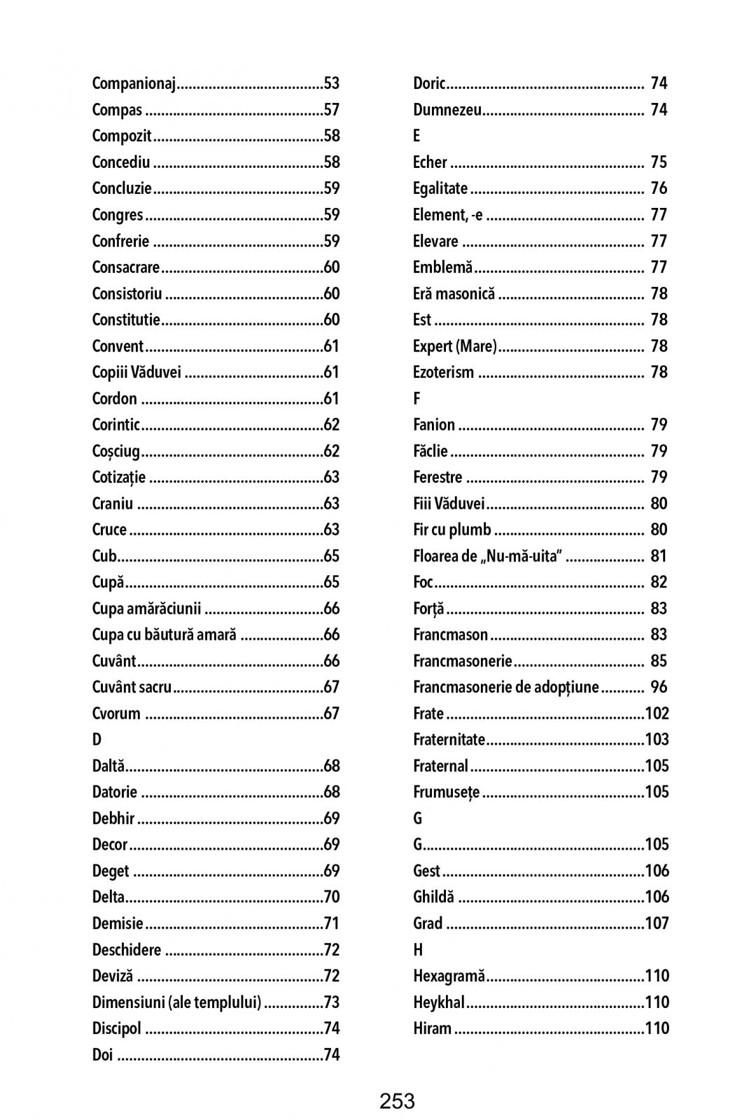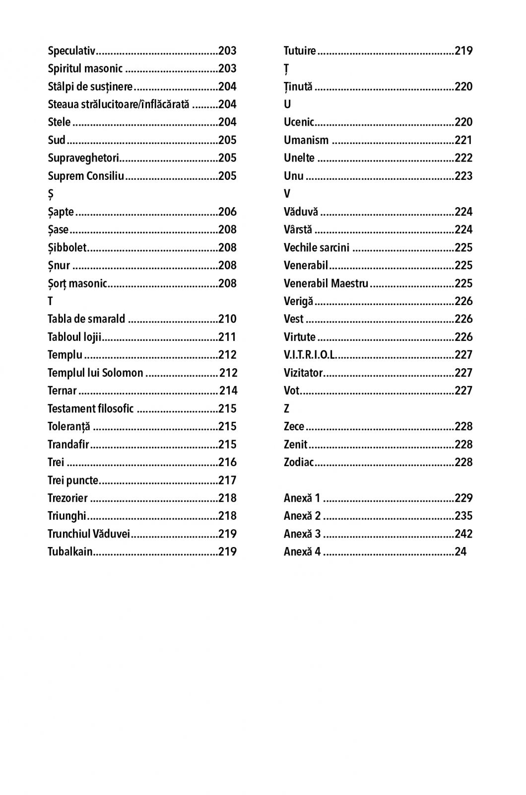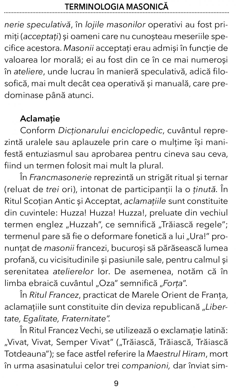 Lucrarea are ca scop explicarea unor termeni uzuali din Francmasonerie, fiind utila atat
